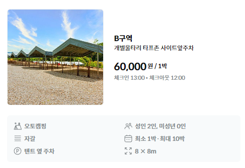 - B-2는 소형(경차) 차박이 가능합니다. (크기 확인 필수)