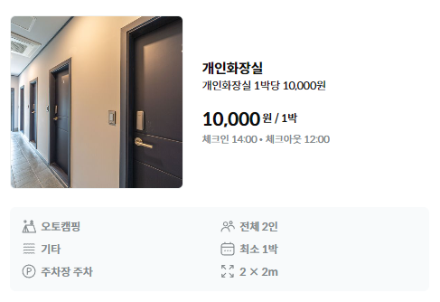 - 4자리가 선착순으로 운영되며, 이용요금은 1박당 1만원입니다.