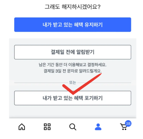 해지 후에도 남은 기간 동안 멤버십 혜택은 유지되며, 다음 달부터는 자동 결제가 중단됩니다.